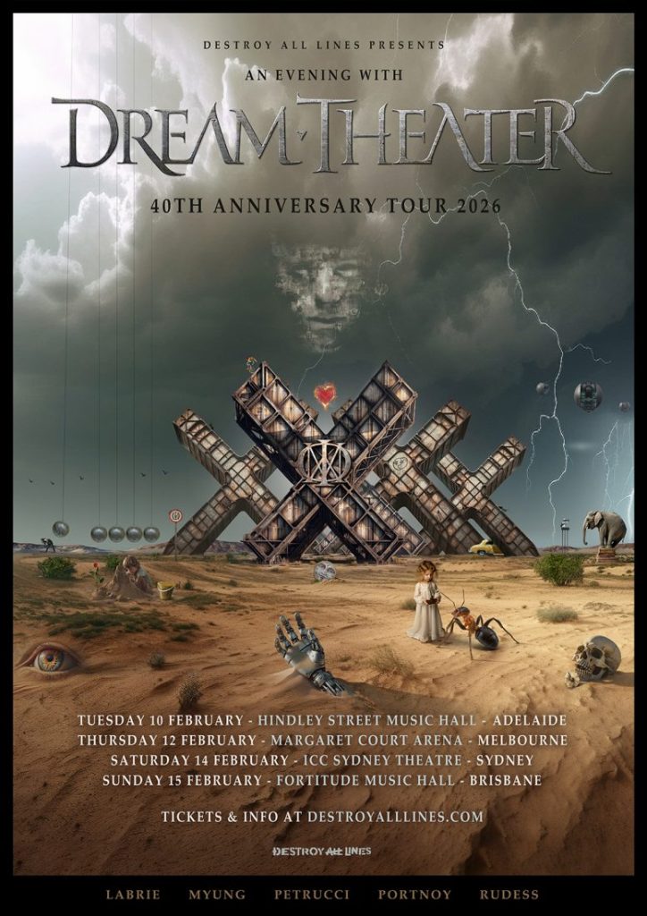 With the worldwide excitement around the recently completed European tour, GRAMMY®-winning, progressive music titans Dream Theater are announcing their 40th Anniversary Tour 2026 leg for Australia. The tour will be An Evening With Dream Theater and will be the first tour of Australia since drummer Mike Portnoy’s return to the lineup joining vocalist James LaBrie, bassist John Myung, guitarist John Petrucci, and keyboardist Jordan Rudess.
