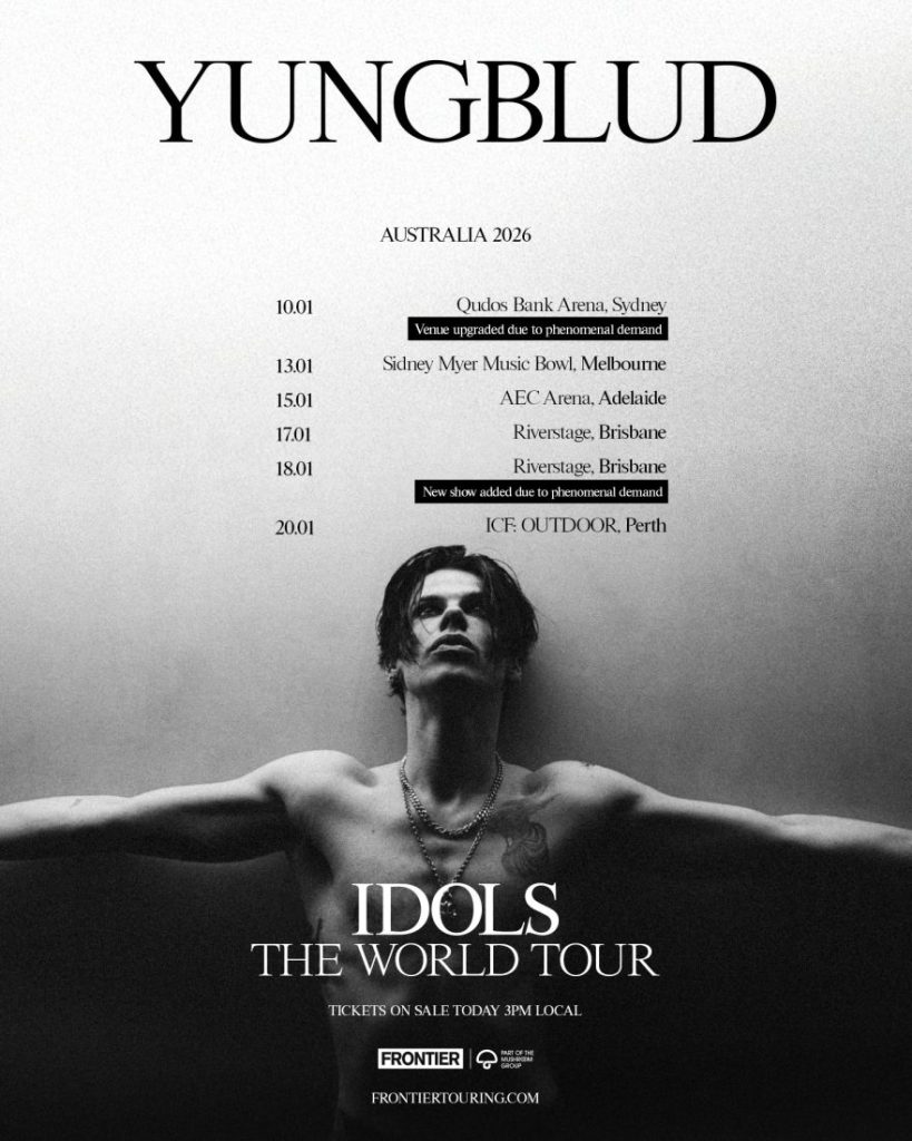 Are you ready for more YUNGBLUD? Due to phenomenal demand during the presale, YUNGBLUD has added an additional show in Brisbane and upgraded the Sydney venue to Qudos Bank Arena for his IDOLS world tour in Australia.