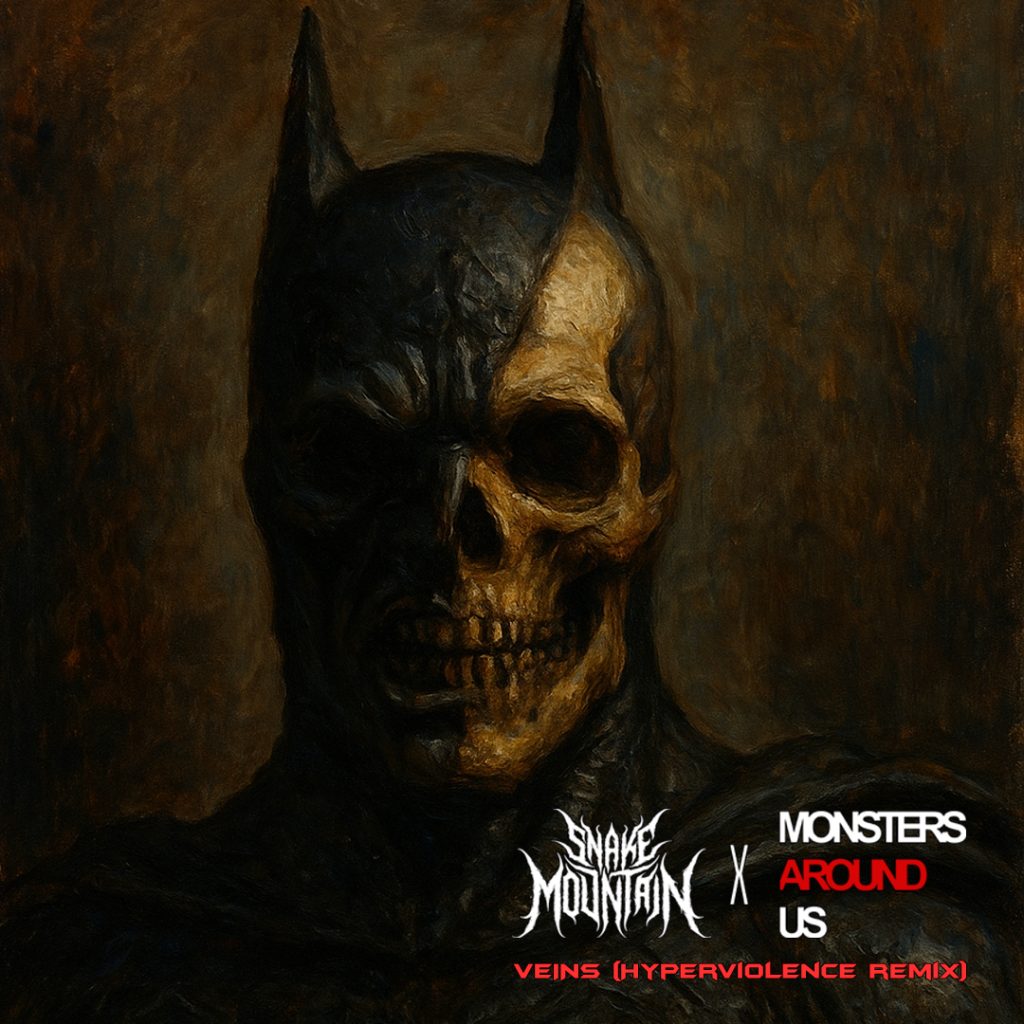 Originally released as a blistering fusion of tech-death riffs and melodic hooks, The Dark Knight Inspired “Veins” has now been reconstructed and reimagined through Monsters Around Us’ signature dark electronic lens — twisting the track into a fever-dream of industrial aggression and cinematic horror atmosphere.