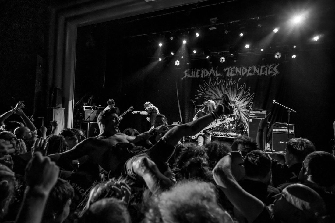 With the crowd now filled in like a can of sardines it was time for greatness. One by one the members of ST enter the stage as my old friend Sam Sal who is currently touring with the guys announces ” Are you ready? From Venice Beach California… Suicidal Tendencies” The Tivoli erupts as Mike Muir one of the greatest frontmen ever, races on the stage with manic focus, then all members come to a halt