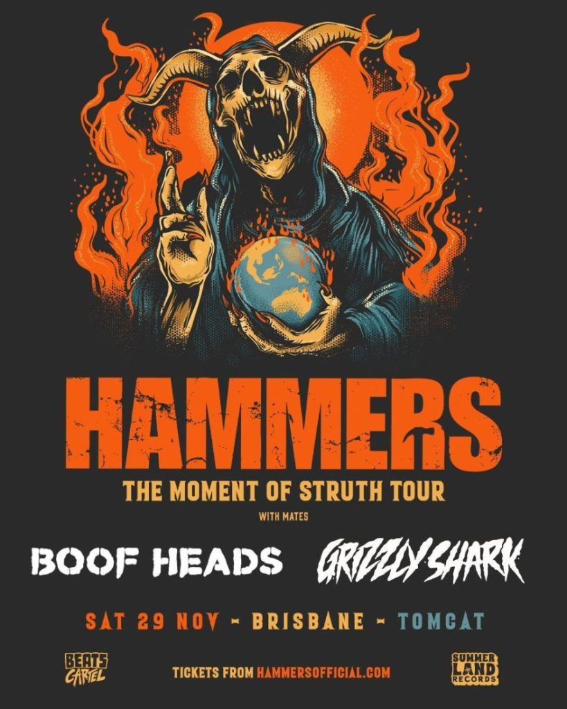 Currently on the road as part of their Moment Of Struth Australian headline run, HAMMERS will take the stage in Brisbane tomorrow night, Saturday 29 November, for a headline shindig, before closing out the year supporting Aussie rock icons Cog on Saturday 6 December on the Sunshine Coast and Saturday 20 December in Byron Bay.