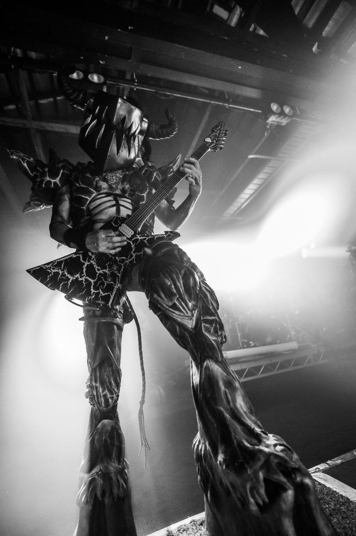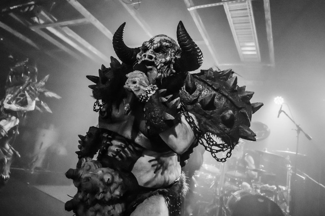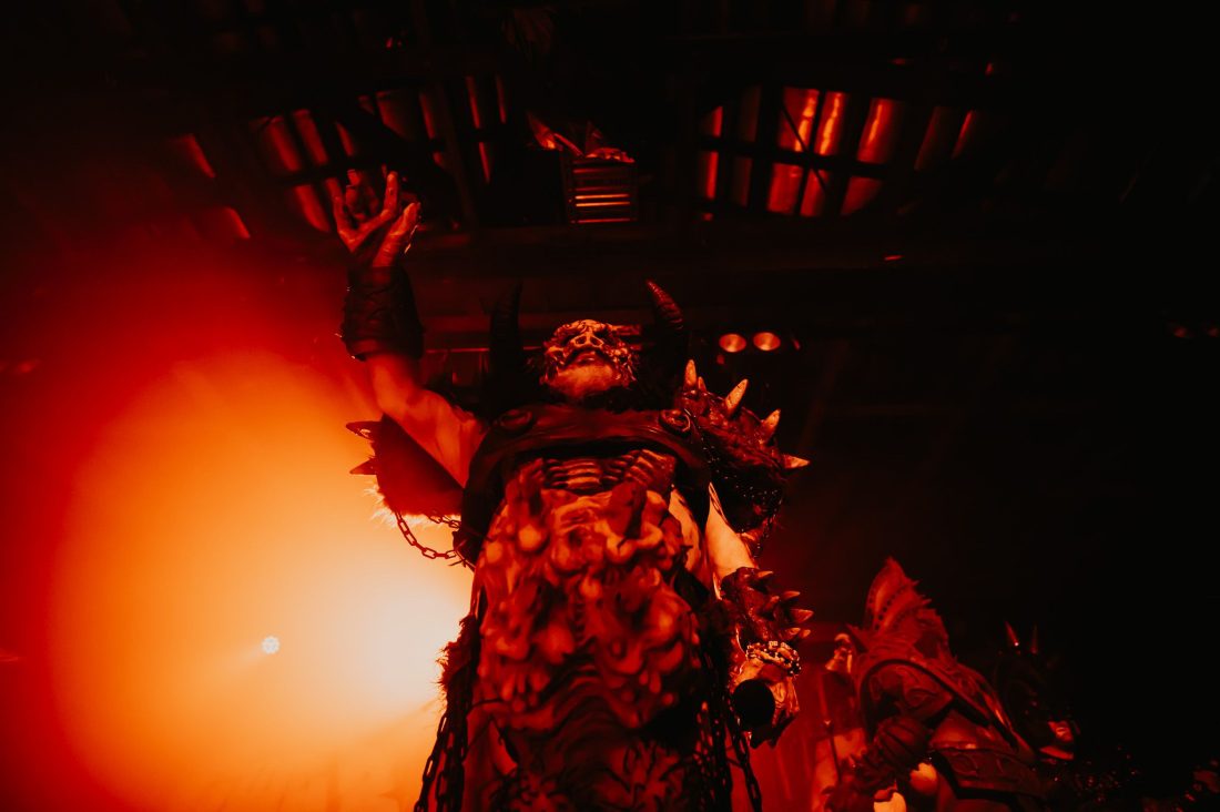 Opening with “Circus Train Disaster” from their latest release, The Return of Gor-Gor, tonight’s performance follows the story of the return and rise of the tyrant lizard. It kicks off with the ringmaster character telling his tale — but he’s quickly disposed of by GWAR, having his face ripped off, which sends blood shooting into the crowd for the first of many gory deaths of the evening.