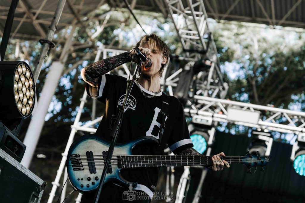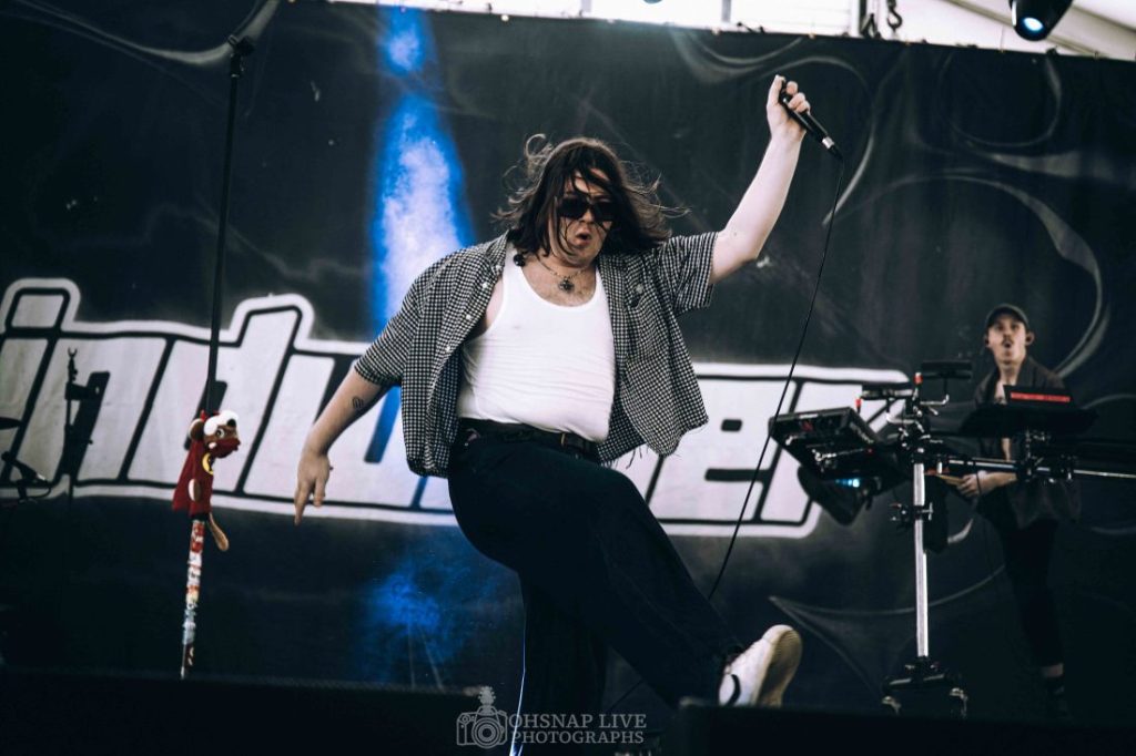 Over on Stage 5, Boof Heads open with the subtlety of a brick through a patrol car windscreen. Sitting somewhere between Rage Against the Machine, Turnstile and The Warriors, their set is a blend of groove, attitude, and tongue-in-cheek hostility. Tracks like “Ooshlad” take aim at hating your boss, while “ACAC” is a cheeky dedication to the cops, delivered with a grin and middle finger. They take things to another level by singing part of the set from atop the stage scaffold before closing with “Scum Bag”, sending the early crowd into a frenzy.
