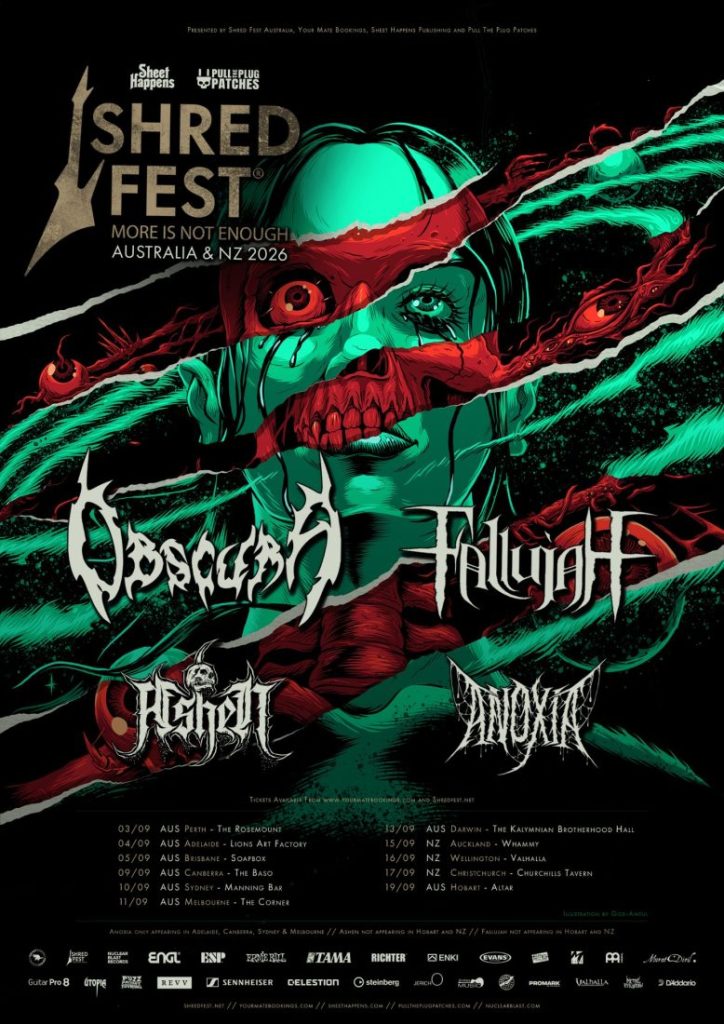 “We’re thrilled to bring Shred Fest to Australia in 2026 alongside the crushing talents of Fallujah, Anoxia, and Ashen. It’s been a long time coming, and we’re ready to deliver a relentless set for our fans down under. No VIP packages — every band will be at the venue to meet you, talk music, and celebrate the most extreme sounds around. Come early, stay late, and support every act. We can’t wait to see you all there.”