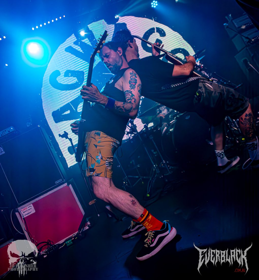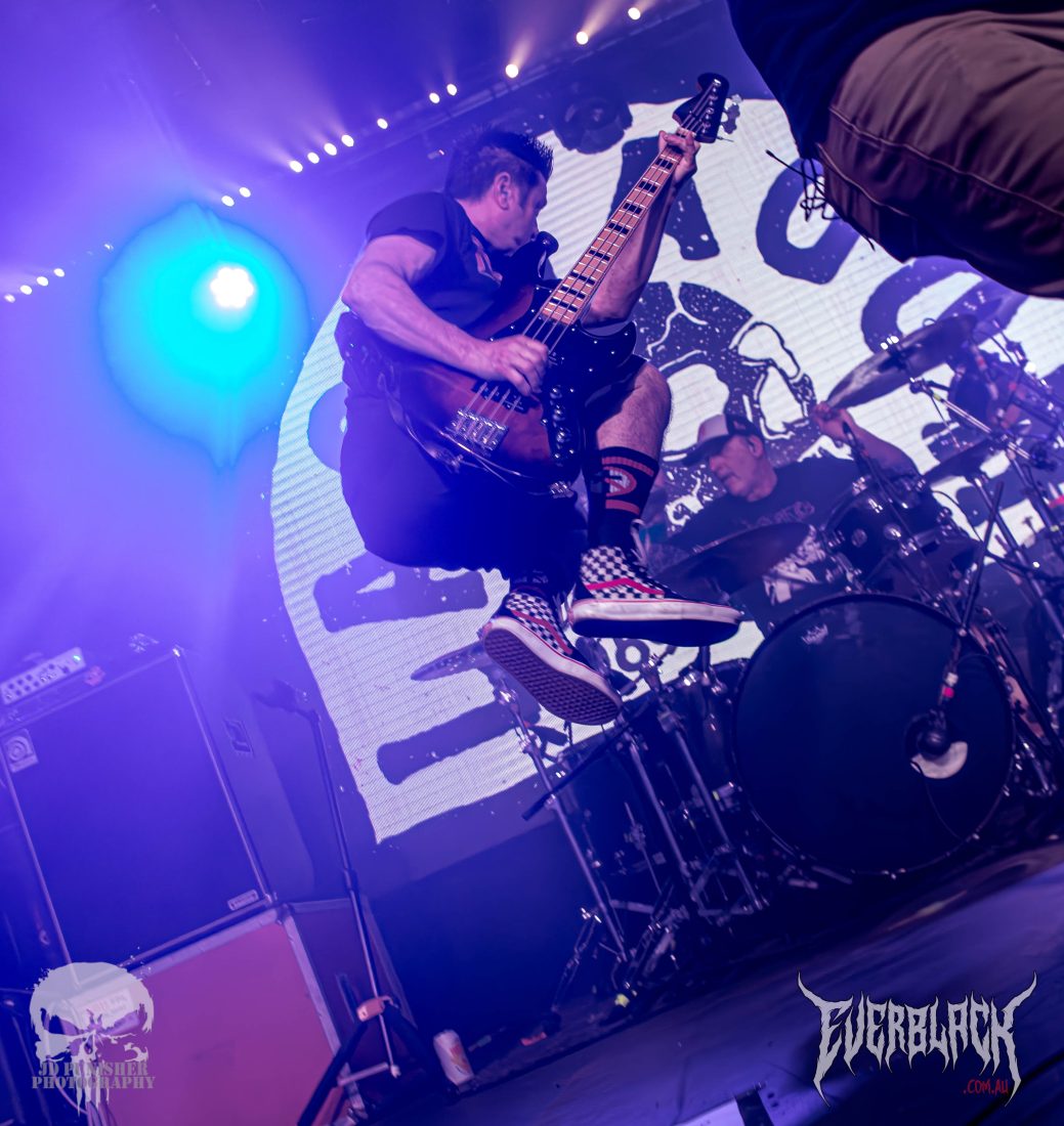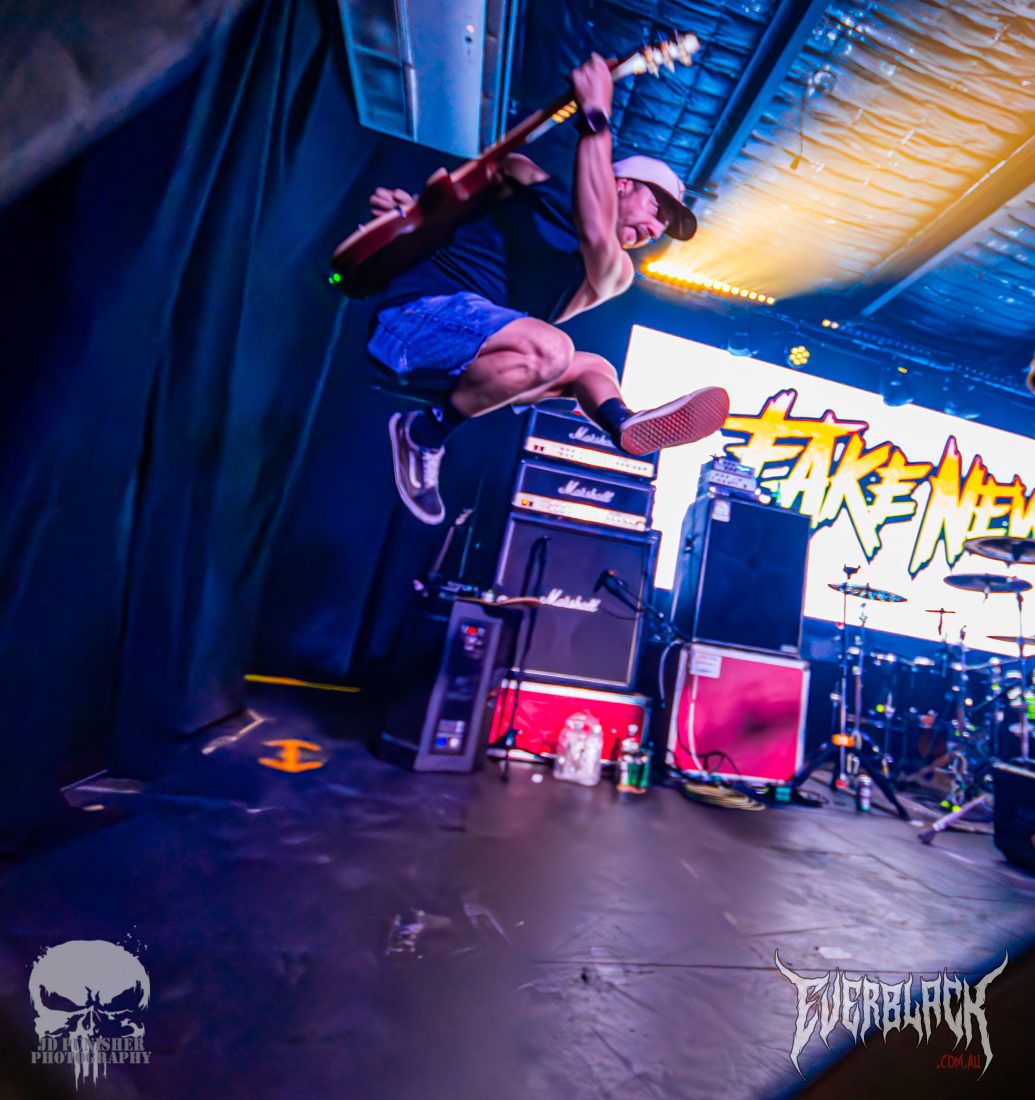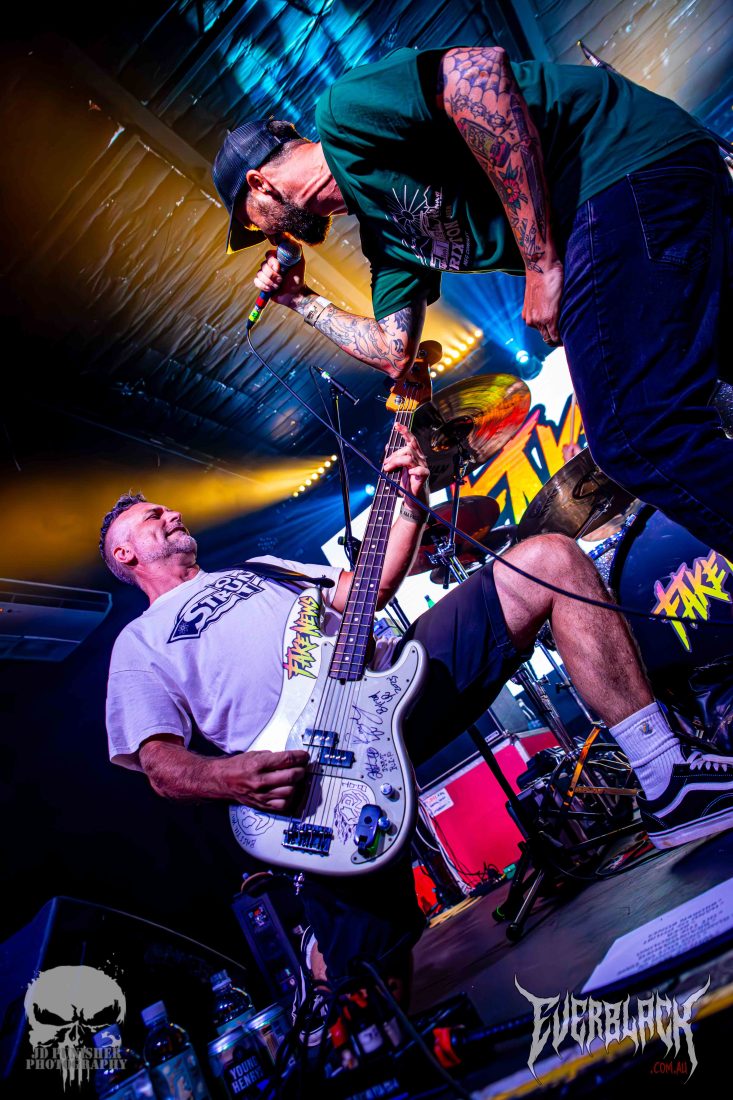 It’s a double threat. Now, I never got to see Fake News 2.0 with Watto on the strings, but from what I hear, he did great things with his time in the band. Tonight however, Mick is back on duty and man does he fucking shred. Some of the best punk rock jumps are executed by this legend, and he NEVER skips a note. Coupling this with the big man Darren, and you have a recipe for some of the best punk riffs in all the land.