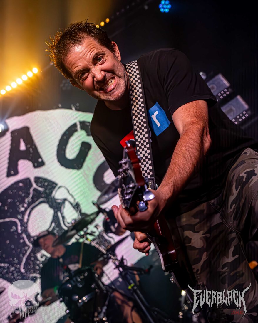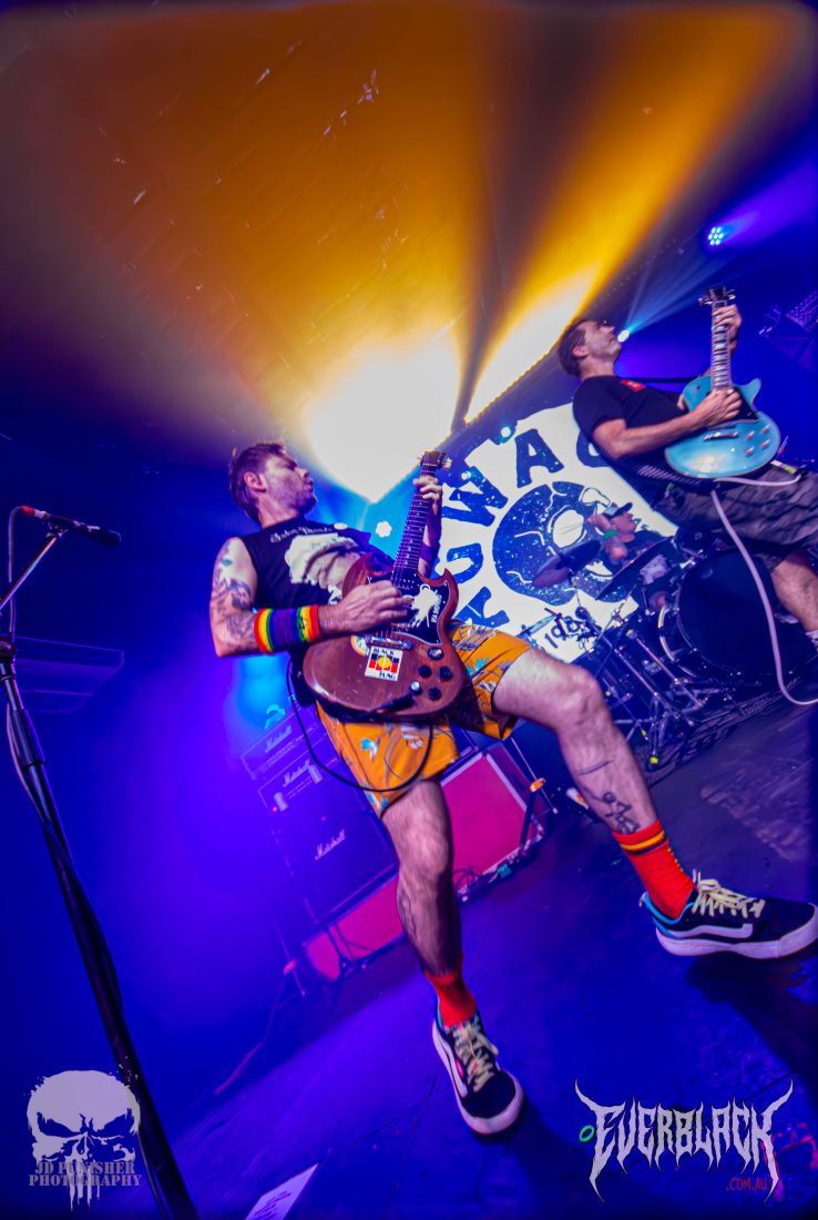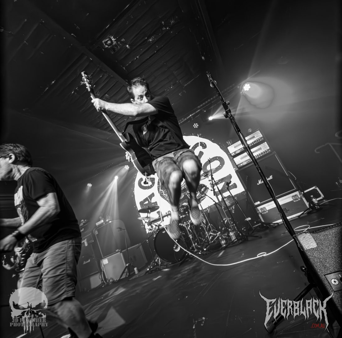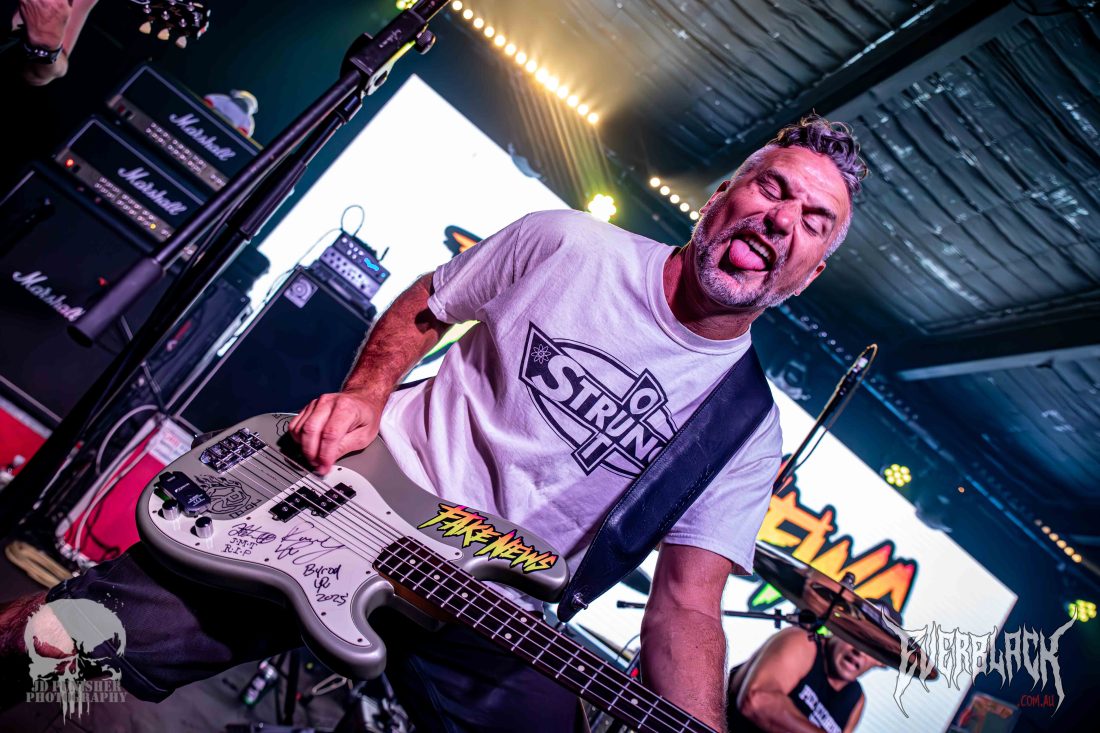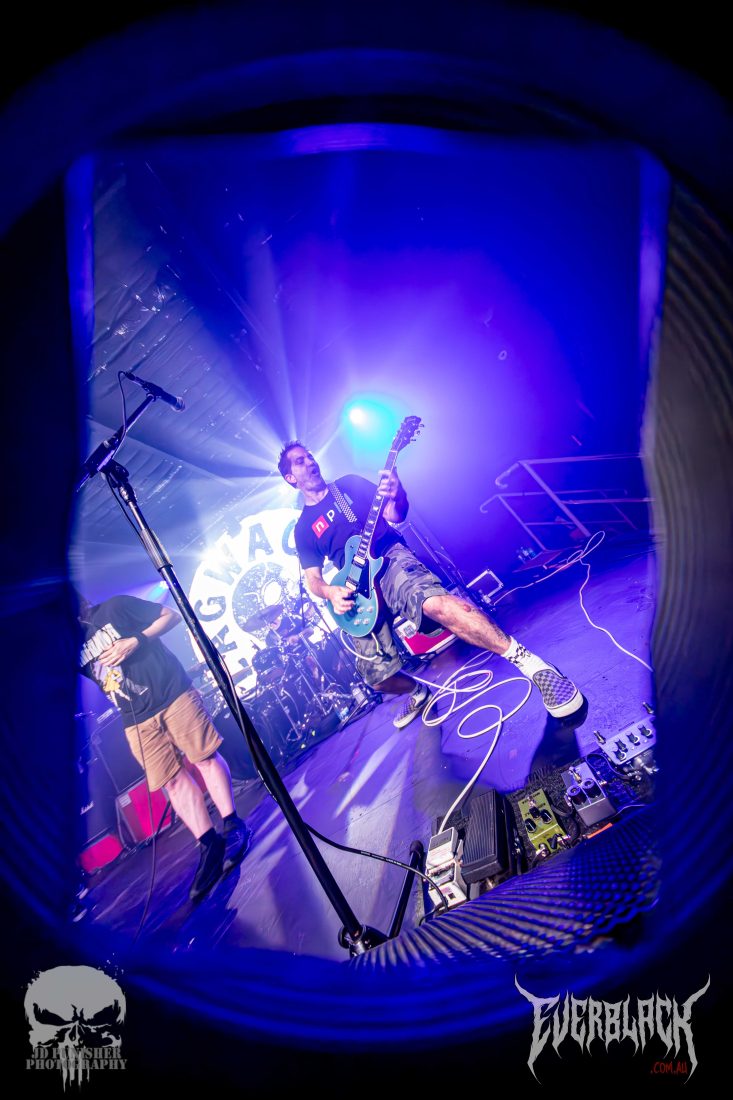 It’s a double threat. Now, I never got to see Fake News 2.0 with Watto on the strings, but from what I hear, he did great things with his time in the band. Tonight however, Mick is back on duty and man does he fucking shred. Some of the best punk rock jumps are executed by this legend, and he NEVER skips a note. Coupling this with the big man Darren, and you have a recipe for some of the best punk riffs in all the land.