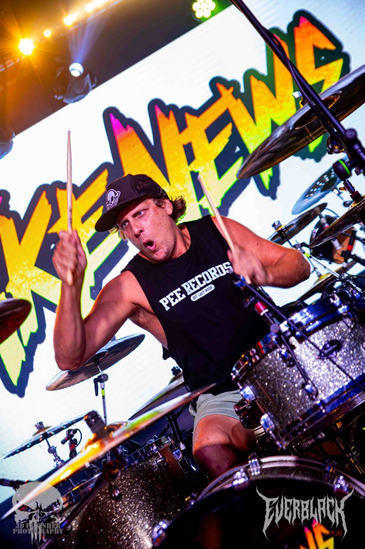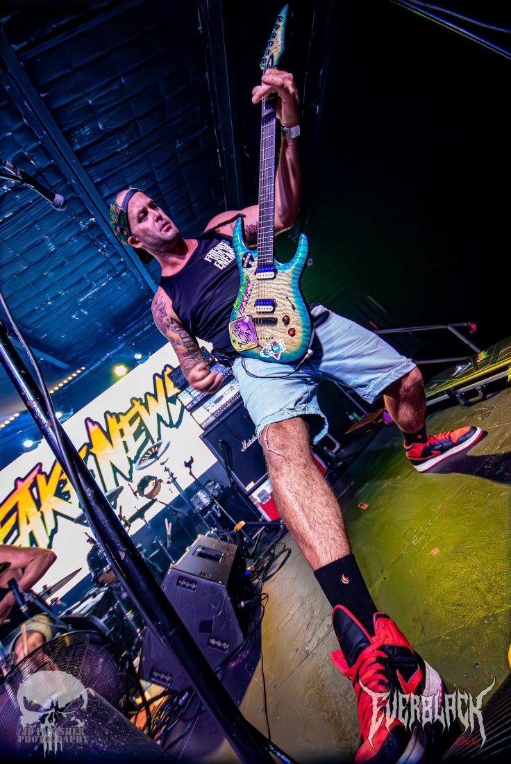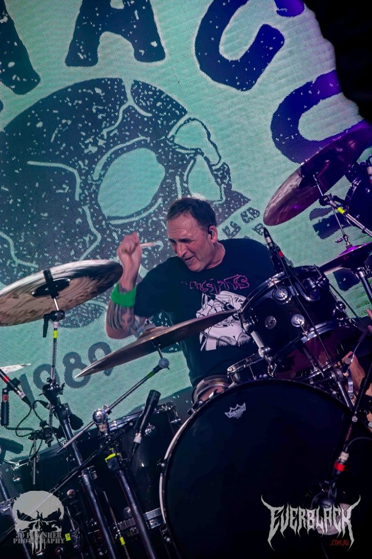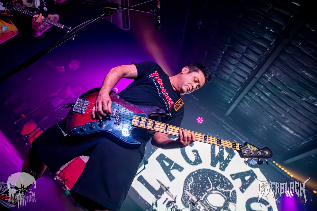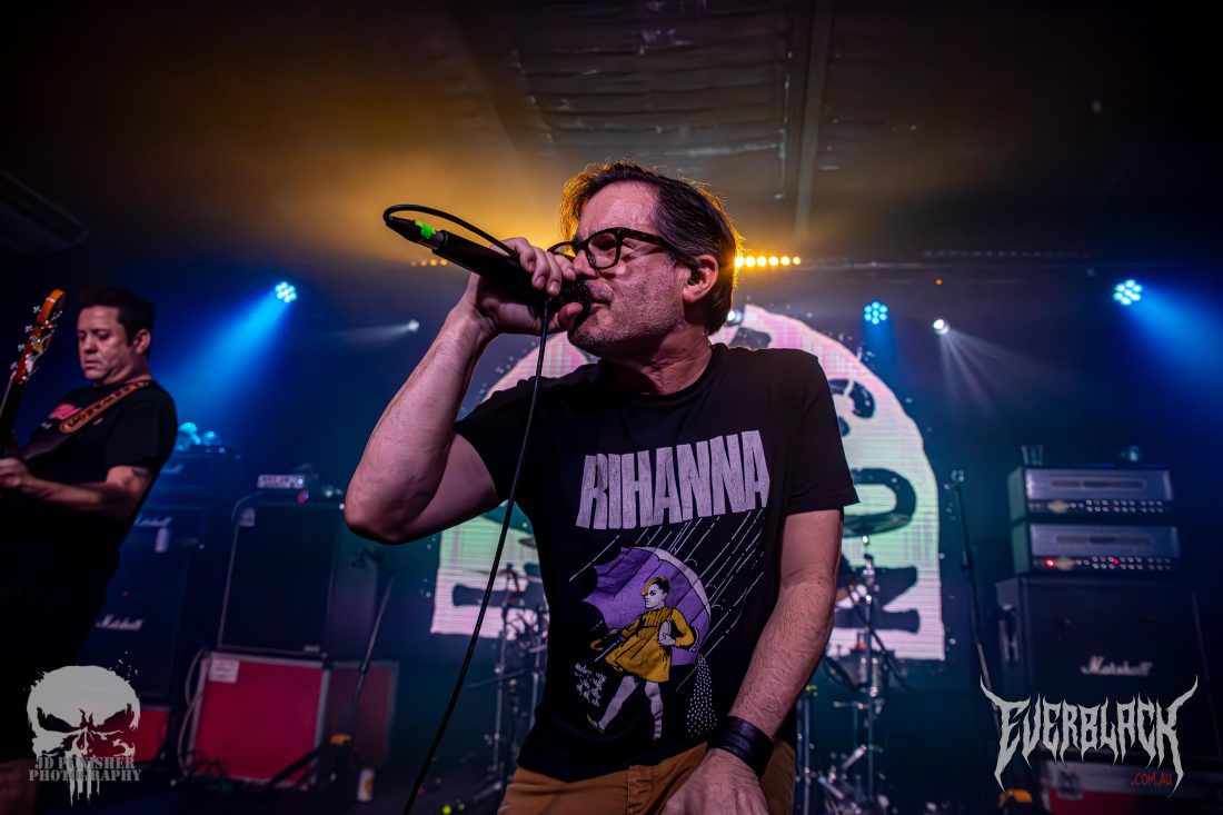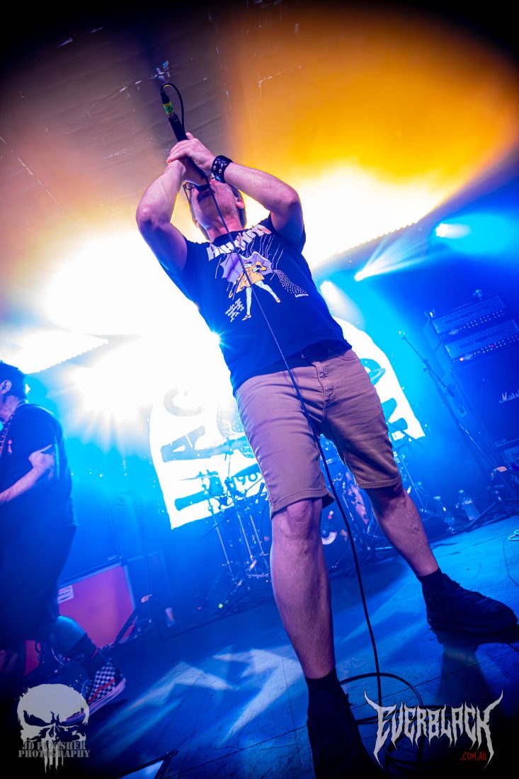 It’s a double threat. Now, I never got to see Fake News 2.0 with Watto on the strings, but from what I hear, he did great things with his time in the band. Tonight however, Mick is back on duty and man does he fucking shred. Some of the best punk rock jumps are executed by this legend, and he NEVER skips a note. Coupling this with the big man Darren, and you have a recipe for some of the best punk riffs in all the land.