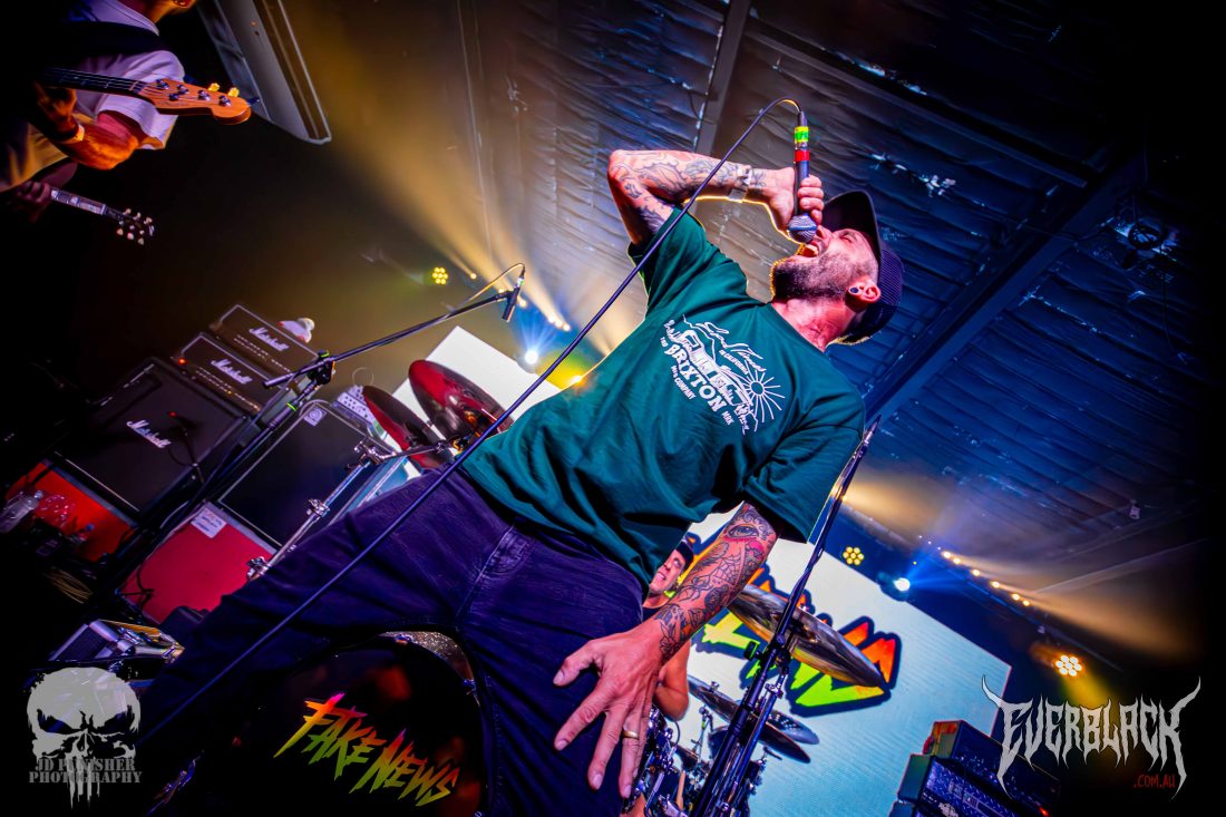 Rolling into Miami Marketta, the air is thick with anticipation for the upcoming feast for the senses (but not before hitting the local paella vendor for my guilty pleasure when I have the chance to get to this amazing venue). Kicking off the night is our southeast Queensland heroes Fake News. I honestly have no bad things to say about this band, they renewed my love of Cali punk and they’re from my hometown.