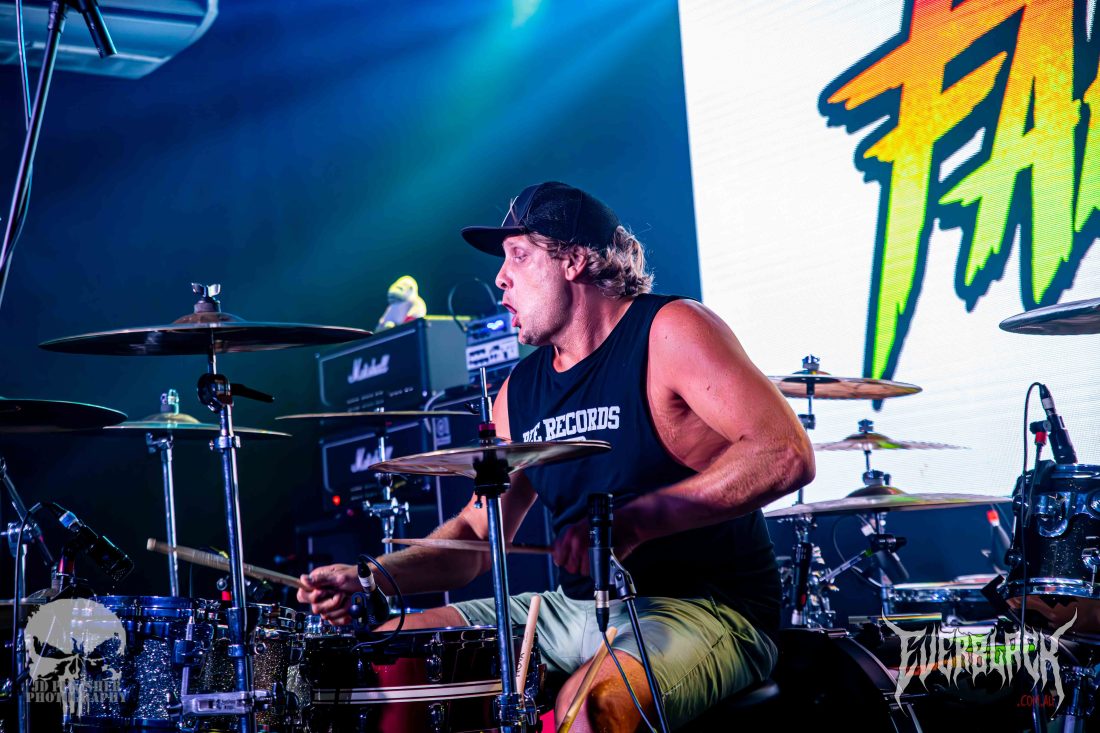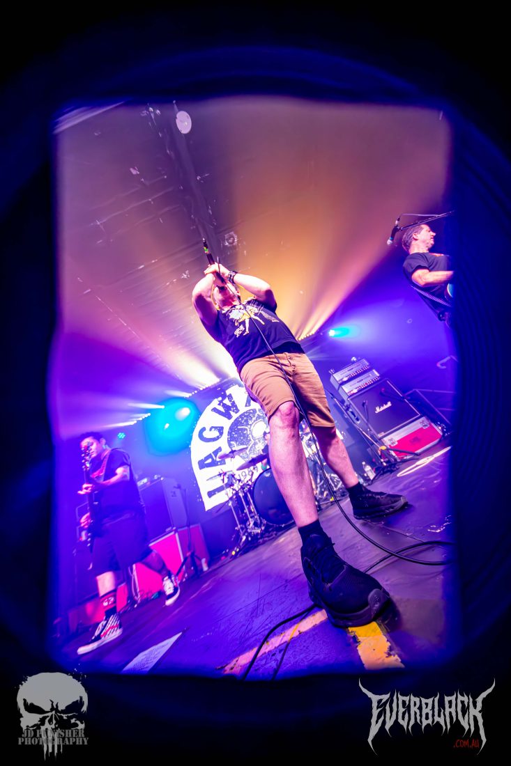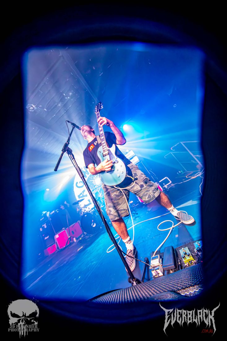 Front man Tim is absolutely smashing it tonight and his chemistry and playfulness with bassist Nick is incredible. With the two constantly feeding off each other’s energy, its certainly adding massive amounts of positivity to the overall vibe of the night. Nat’s smashing of the skins tonight is incredible, from the paradiddle intro of Face Of Death, all the way through to the massive finale of Broken Bones, he never misses a beat and does it all with a smile on his face.