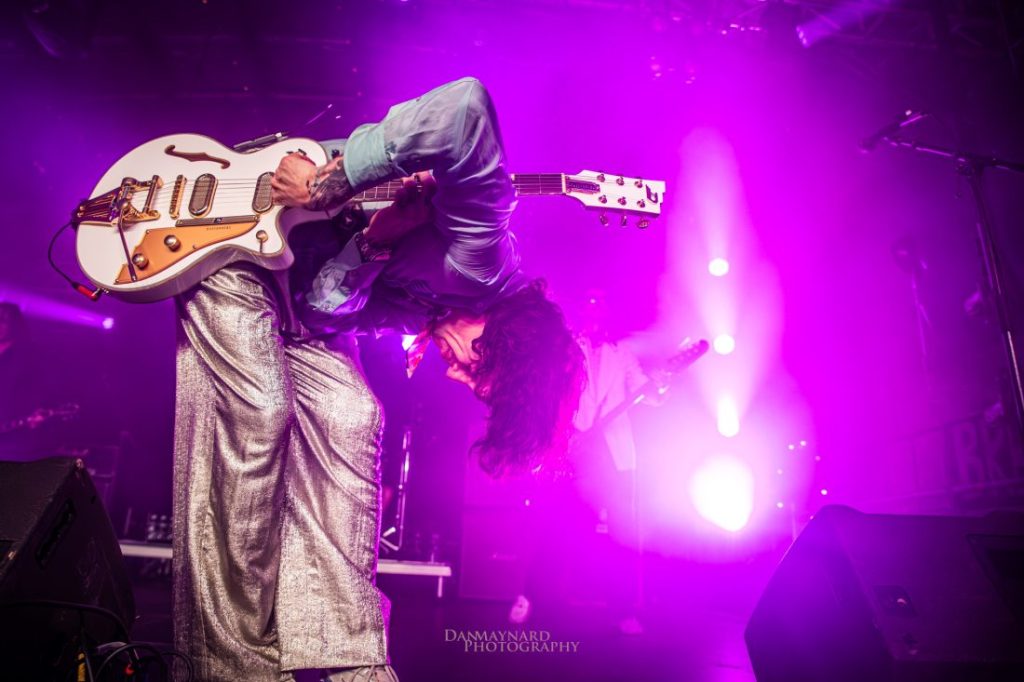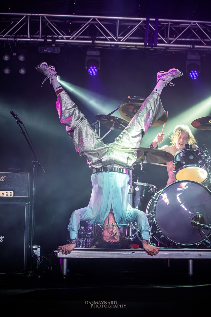 Then came Get Your Hands Off My WomanJustin worked the crowd with charming sarcasm, yelling, “Gimme a D! Gimme an arkness! We are the motherfucking Darkness!” He punctuated the chaos with a handstand, clapping his feet in time with the beat before dropping straight back into falsetto call and response. Three songs in, the shirt was already off, and his voice carried effortlessly across the room.