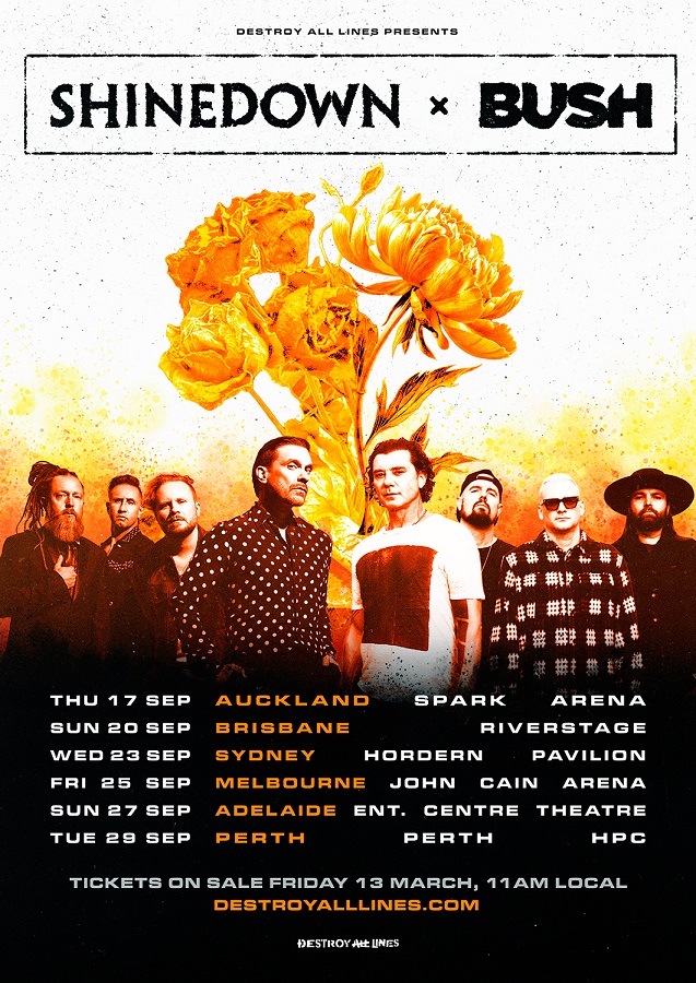 Don’t let the days go by this September and avoid the sound of madness by securing your tickets ASAP for SHINEDOWN and BUSH‘s massive Australian and New Zealand co-headline tour in 2026.