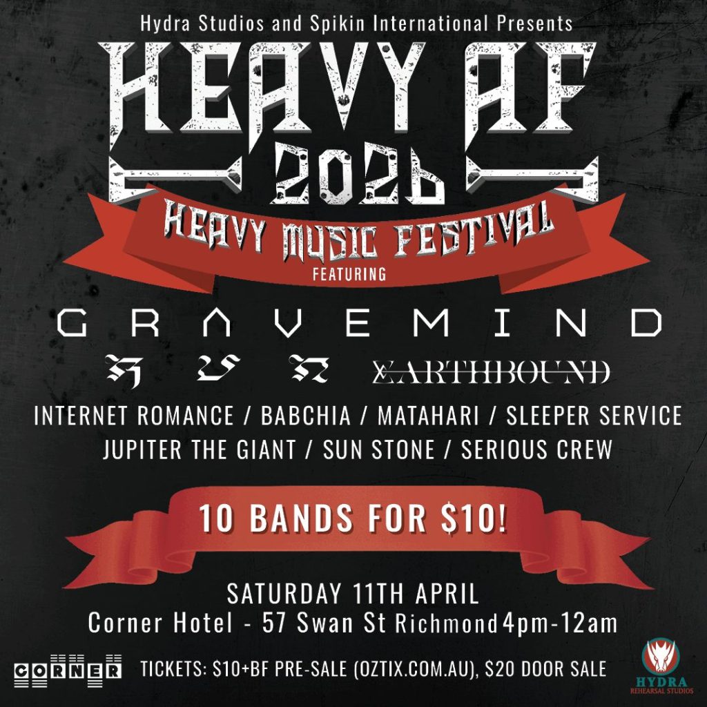 Presented by Hydra Studios, HEAVY AF has previously sold out in 2018 and 2019, and this year marks the festival’s long-awaited return at the iconic Corner Hotel. Expect a full day of genre-crossing mayhem, from moshpits for progressive rock to head-banging heavy rock.