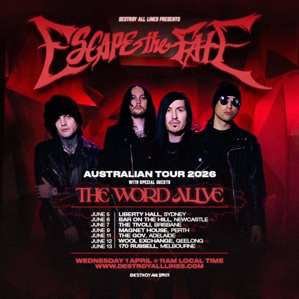 Las Vegas post-hardcore heavyweights Escape The Fate will make their long overdue return to Australia this June, bringing with them US metalcore mainstays The Word Alive – taking in every capital city and a couple of regional ones too!